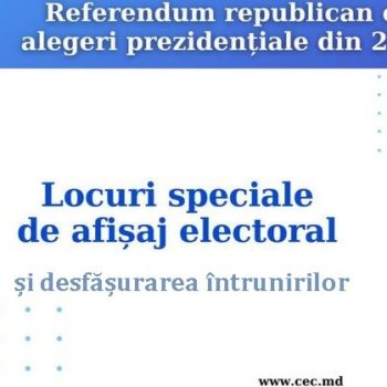 În vederea bunei organizări și desfășurări a alegerilor pentru funcția de Președinte al Republicii Moldova și a referendumului republican constituțional stabilite pentru data de 20 octombrie 2024, se stabilesc în teritoriul oraşului Dondușeni următoarele locuri speciale de afisaj electoral: – Panoul de informare din incinta Primăriei orașului Dondușeni – Panoul de informare din fața Primăriei […]